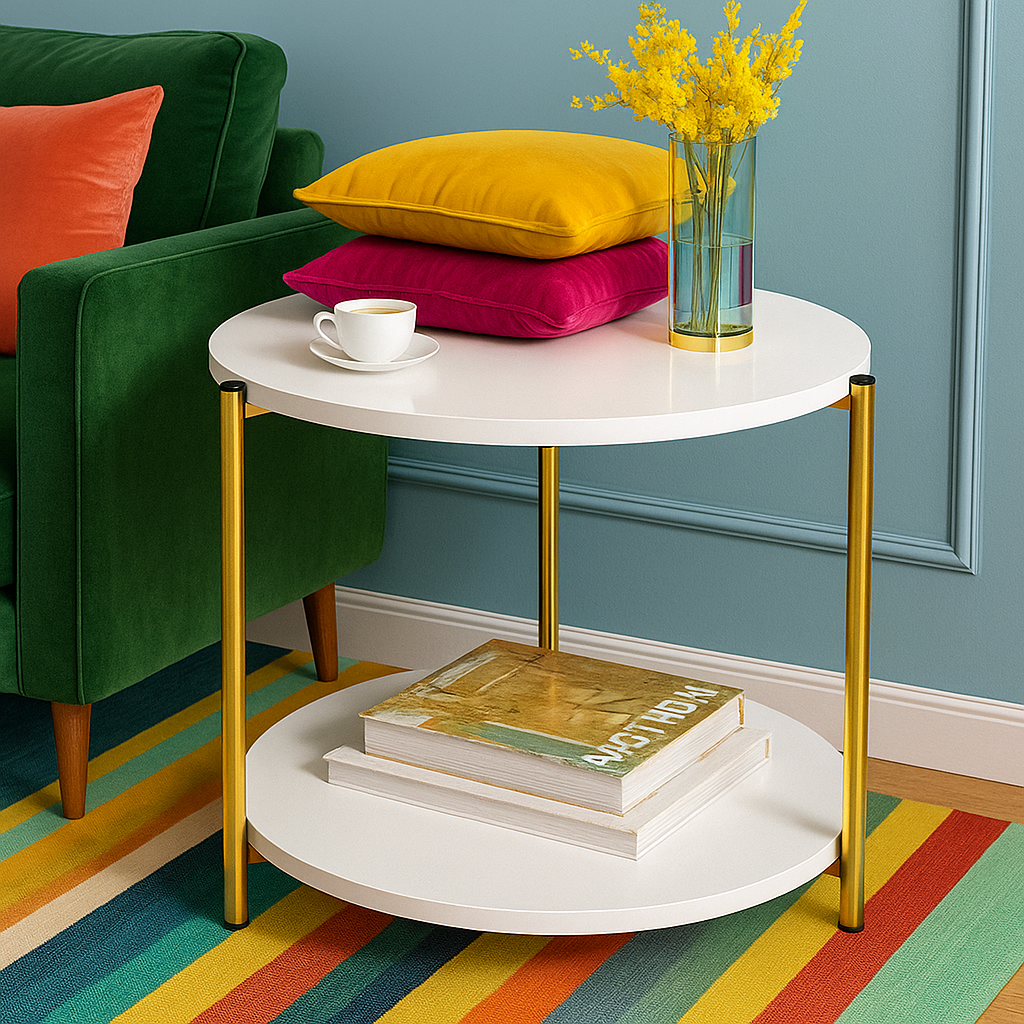 Masuta de cafea, etajera alba, 48 x 31.5 x 35 cm