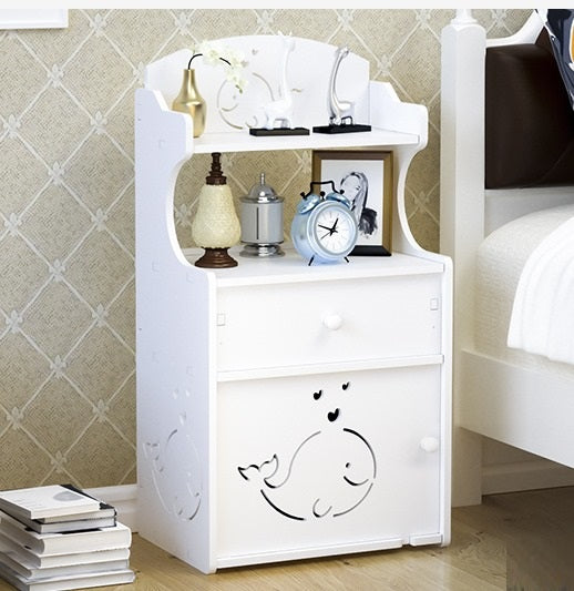 Noptiera alba decorativa, din PVC, 2 polite, 45cm