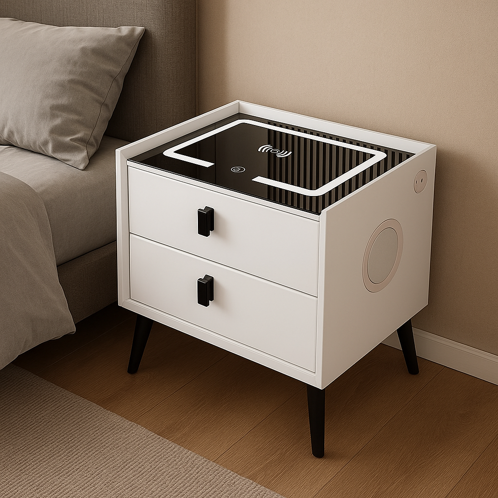 Noptiera alba decorativa, din PVC, 2 polite, 45cm