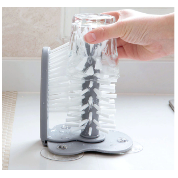 Perie dubla pentru spalat pahare, fixare cu ventuza