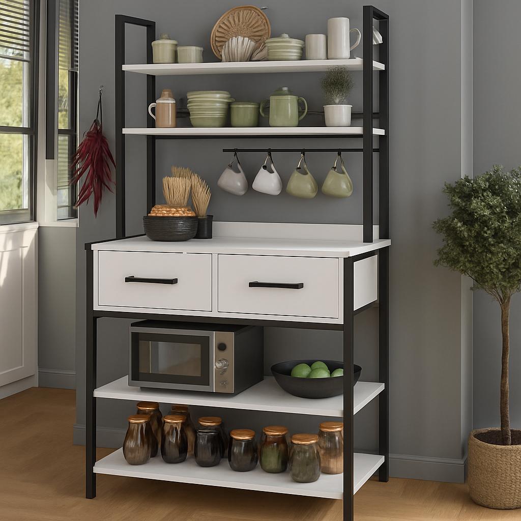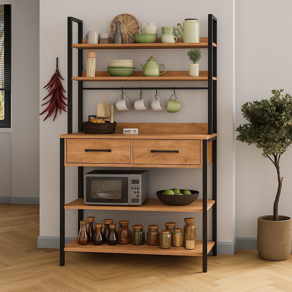 Suport de bucătărie cu 2 sertare și 5 rafturi 120x74x10 cm