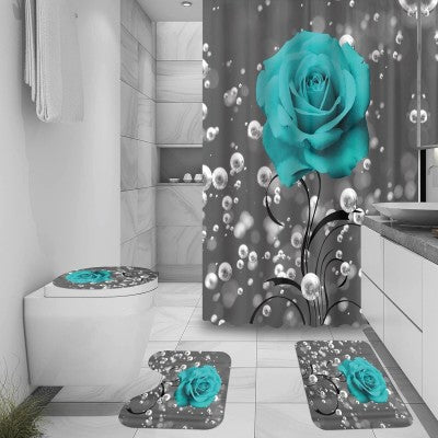 Set baie 4 piese: perdea, covorase si husa de toaleta