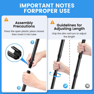 Se montează rapid fără unelte sau găurire. Include manual detaliat + tutorial video (accesibil prin scanarea codului QR). Nu deteriorează pereții sau tavanul. Ușor de mutat sau ajustat.