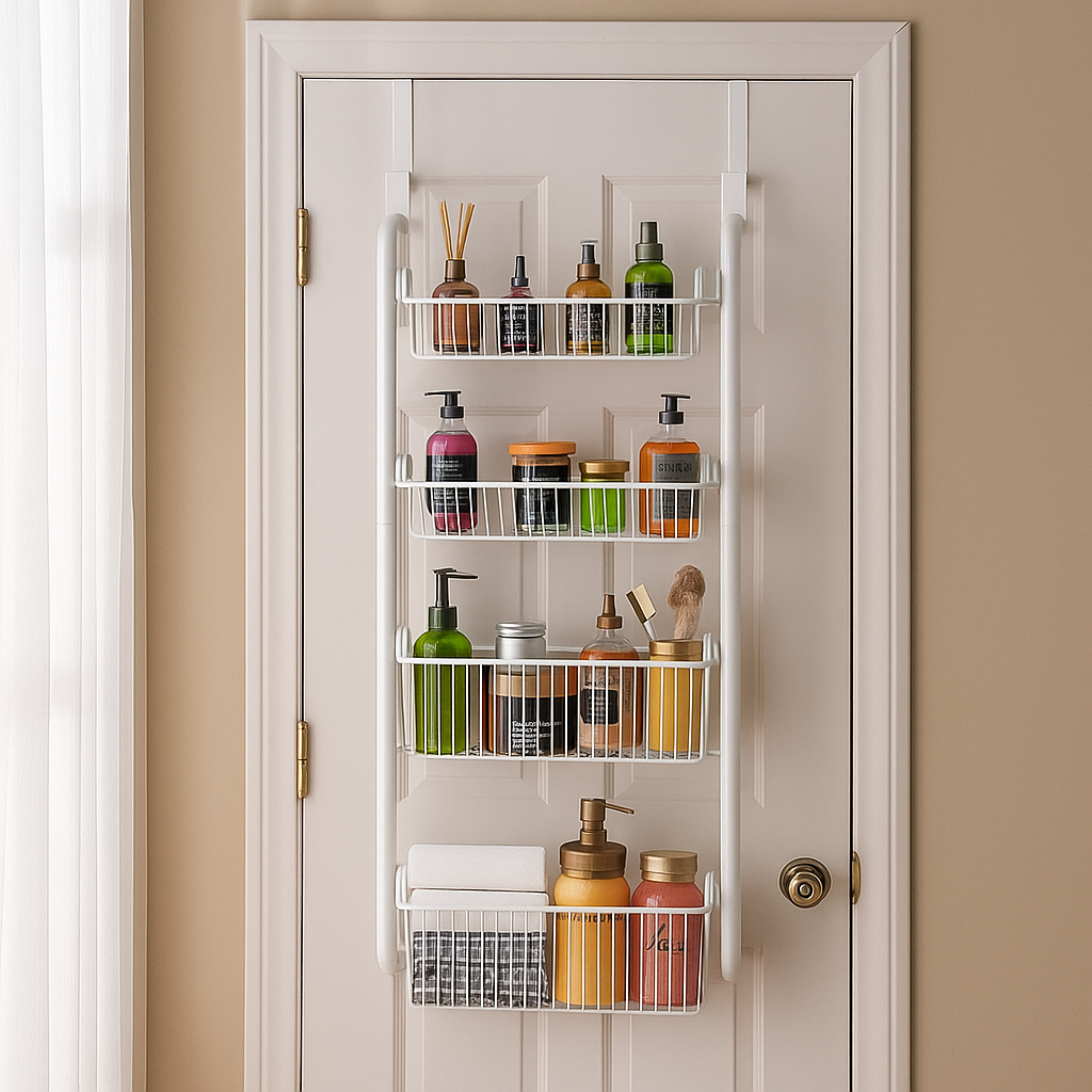 Pastreaza-ti locuinta mereu organizata cu organizatorul metalic cu 4 nivele pentru usa, disponibil in culorile alb sau negru. Ideal pentru bucatarie, baie, camara sau dormitor, acest suport modern iti ofera o solutie inteligenta si eleganta pentru depozitare, fara a ocupa spatiu suplimentar.