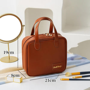 Aceasta geanta de machiaj este realizata din piele ecologica PU de inalta calitate, fiind durabila, impermeabila si usor de curatat. Ofera protectie excelenta produselor tale cosmetice si mentine totul bine organizat, atat acasa, cat si in timpul calatoriilor.