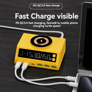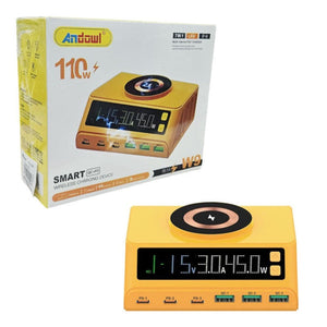 Statie de incarcare wireless M9A 110W cu 6 porturi USB si afisaj LED – Galben