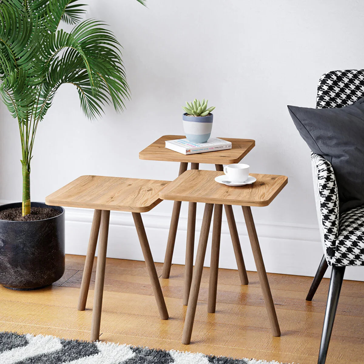 Set 3 masute decorative cu picioare din lemn 34x34 cm, 3 inaltimi (41 / 45 / 49 cm)