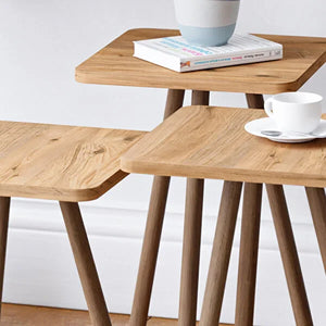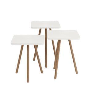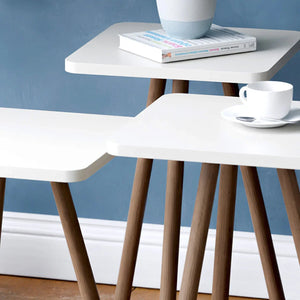 Setul de 3 masute zigon cu blat alb si picioare din lemn masiv este alegerea ideala pentru cei care apreciaza mobilierul compact si functional. Poti folosi masutele impreuna sau separat, in functie de nevoile tale – langa canapea, pat, fotoliu sau ca suport decorativ.