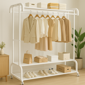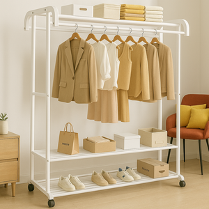 Adauga functionalitate si stil modern in holul sau dormitorul tau cu acest organizator complet din metal, cu rafturi multiple si cuier integrat. Ideal pentru depozitarea hainelor, incaltamintei si accesoriilor, acest suport este alegerea perfecta pentru spatii mici sau medii.