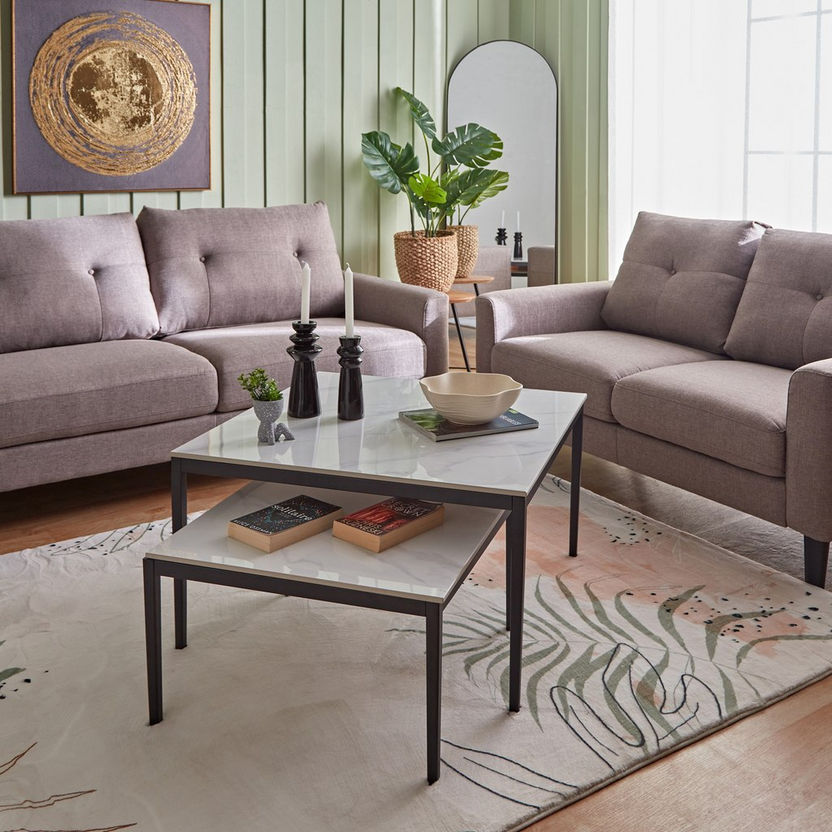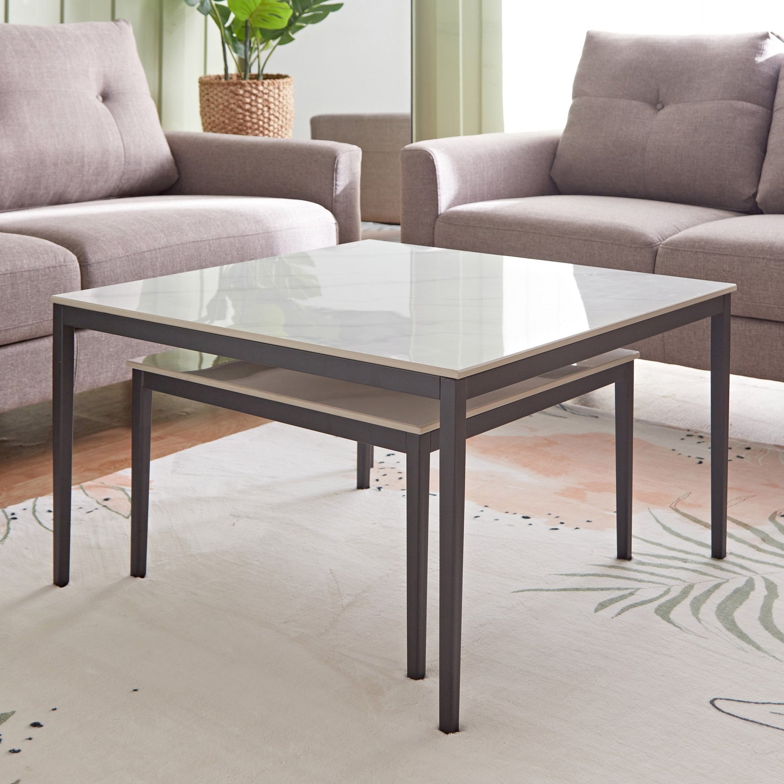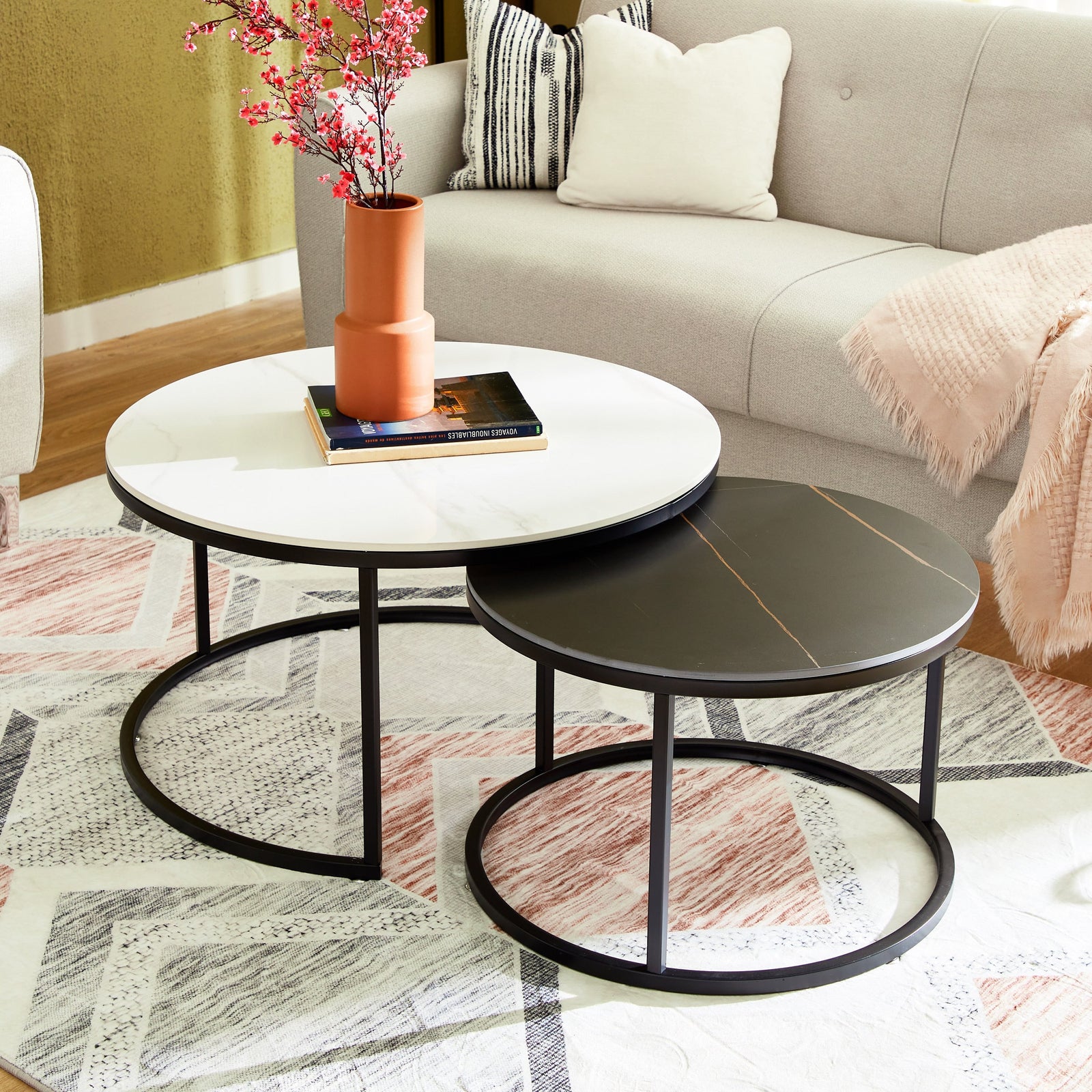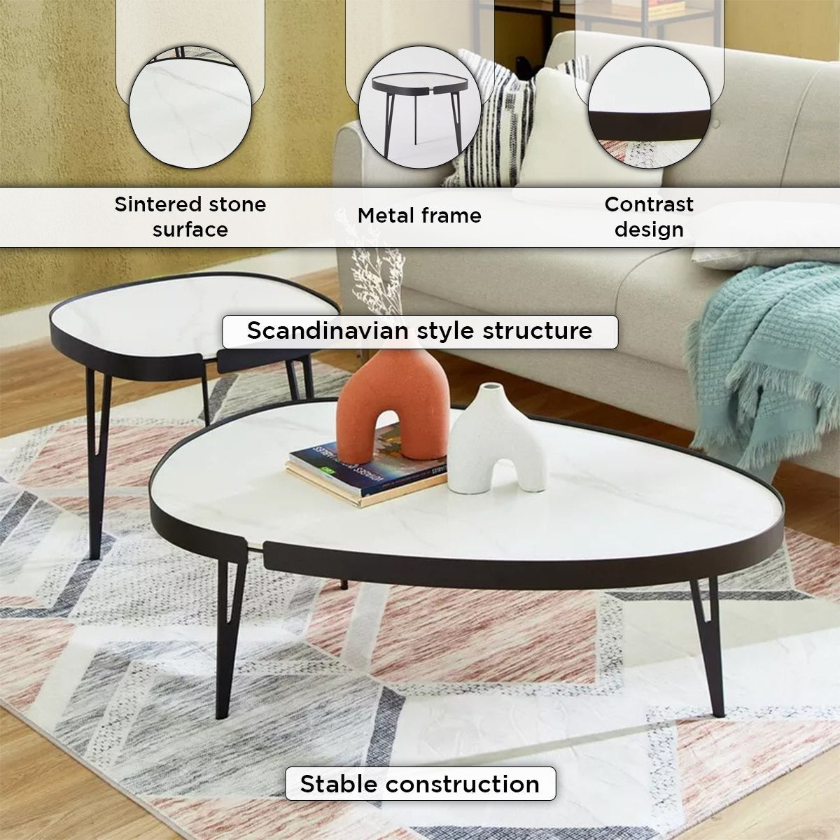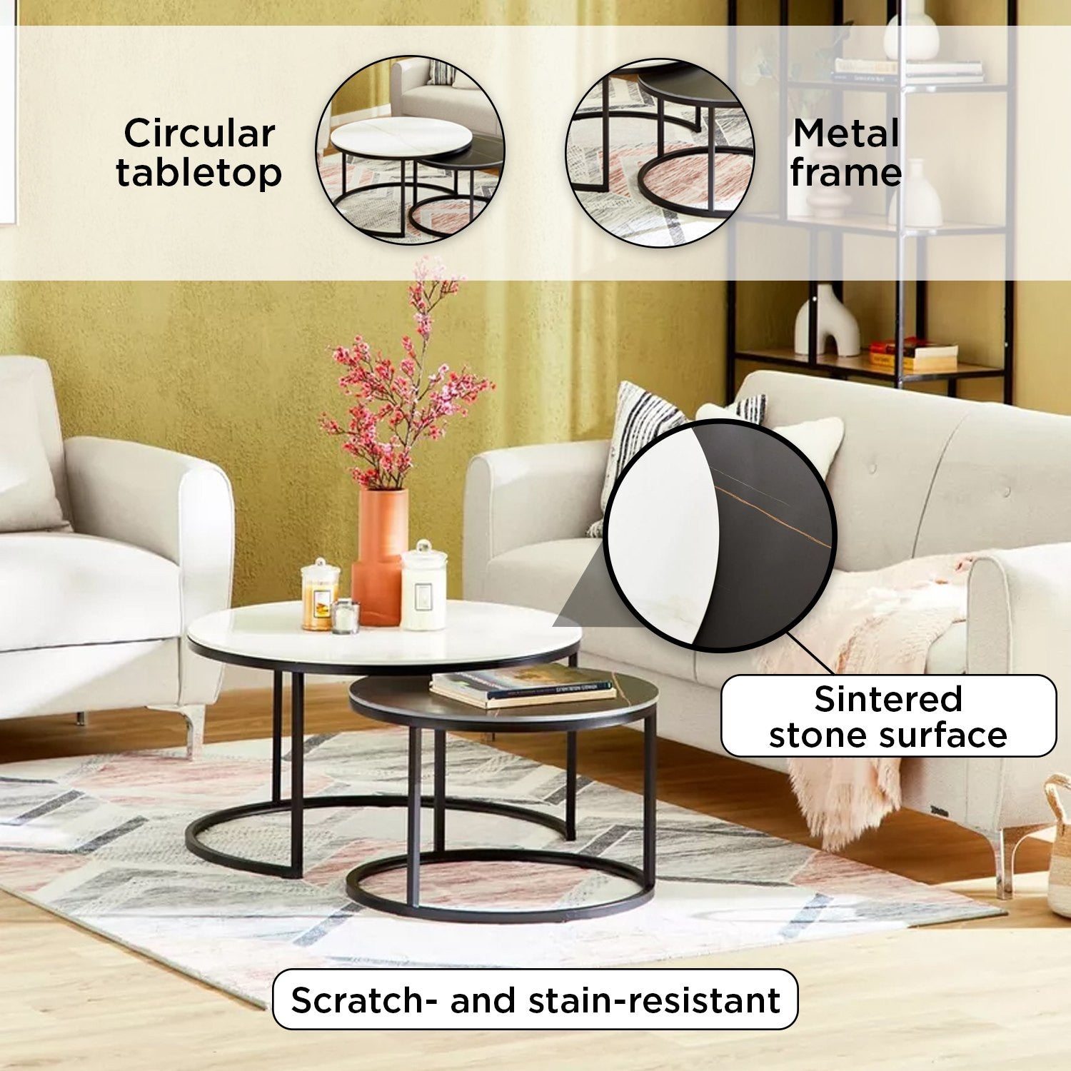 Set 2 măsuțe de cafea suprapuse din piatră sinterizată
