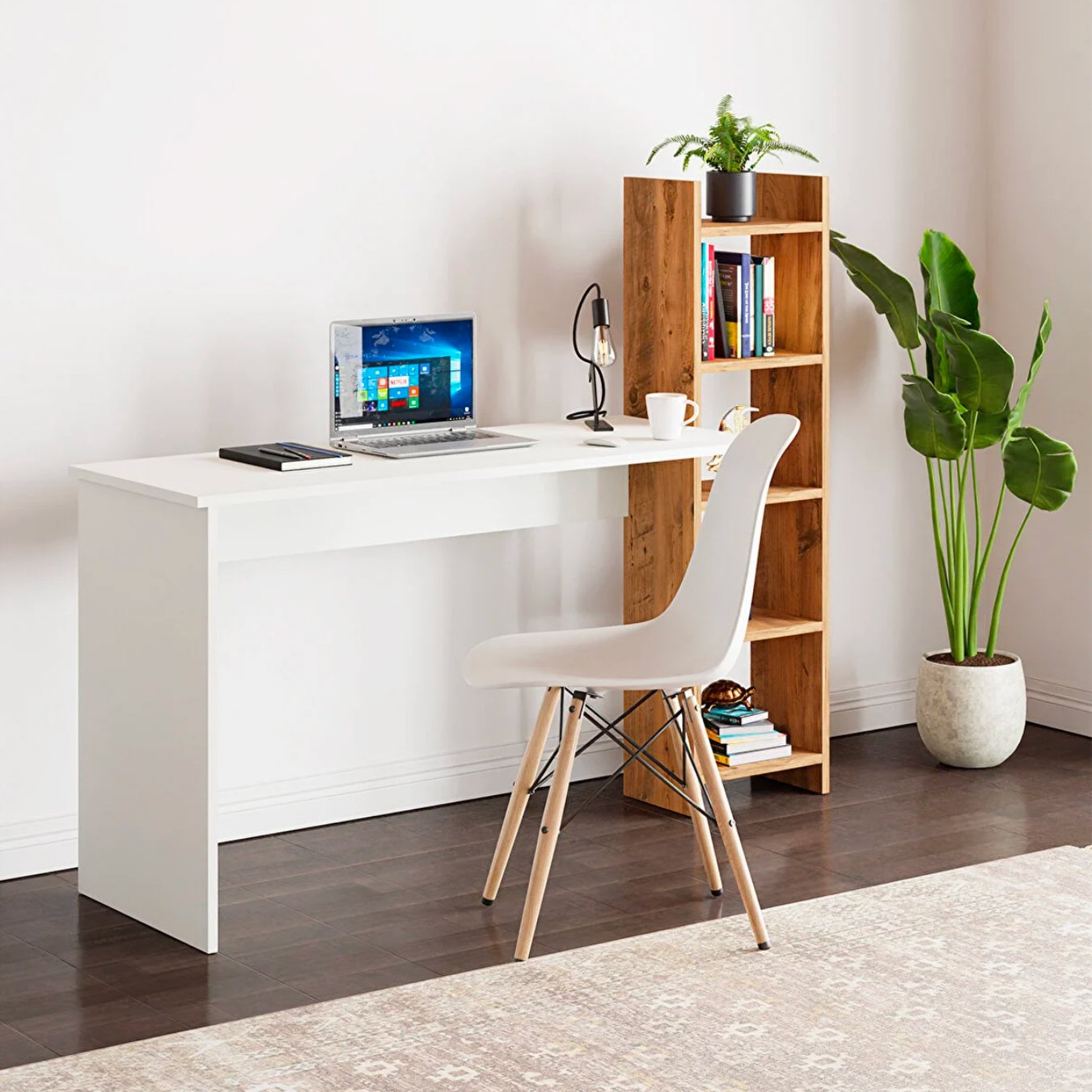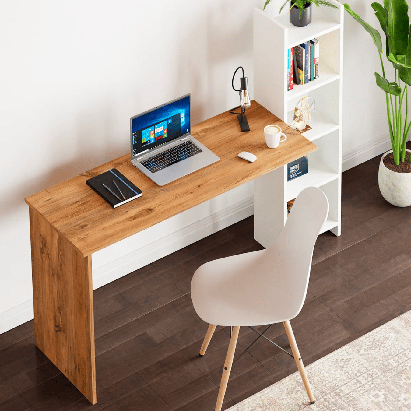 Birou de studiu cu raft dublu, MDF si lemn masiv, 120x60 cm