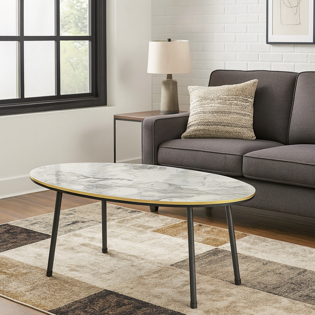Masa de cafea moderna 90x50x42 cm MDF cu picioare metalice