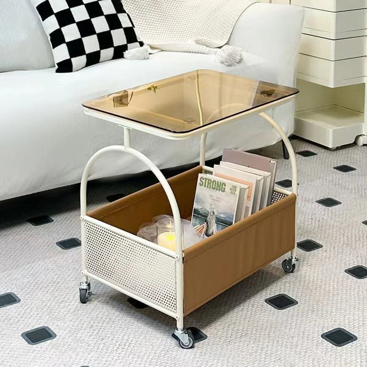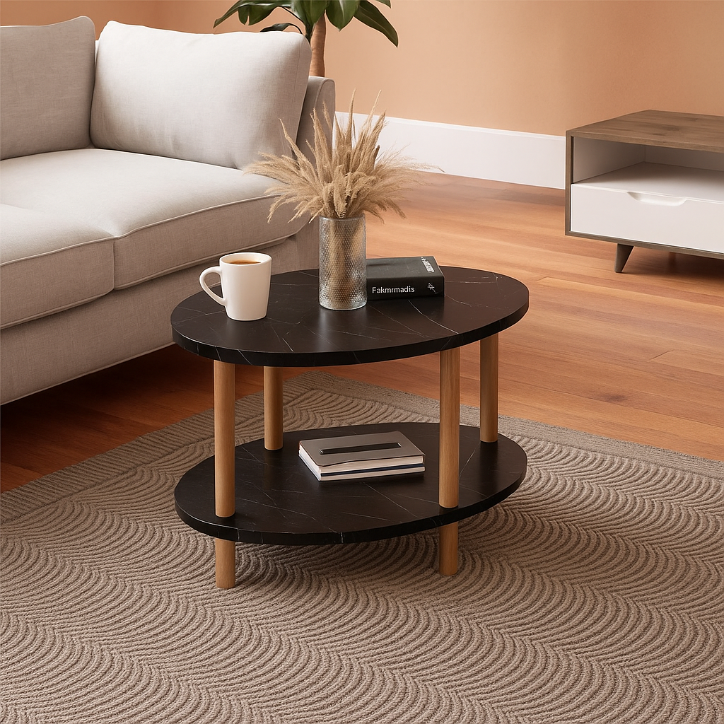 Masuta cafea moderna cu raft, design scandinav, 70x44x43 cm