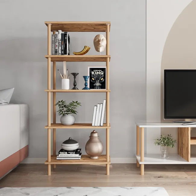 Comoda TV cu rafturi, 120 cm, model cu picioare din lemn