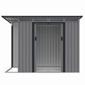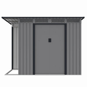 Casuta / magazie de gradina premium metalica, MESTERINO Chester-A, Gri/Bej, dimensiuni 257x142x184 cm, cu usi culisante si baza metalica