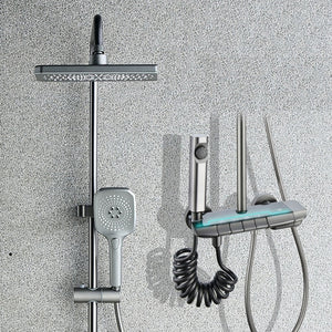 Dotat cu un pistol de pulverizare cu doua iesiri si un dus cu suprafata mare, acest sistem de dus ofera un flux optim de apa, garantand o curatare eficienta. Corpul din aluminiu spatial este durabil si rezistent la presiuni ridicate.