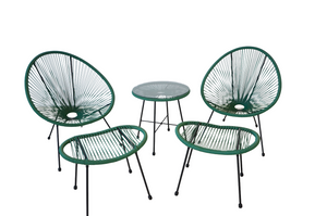 Creeaza un colt relaxant si modern in aer liber cu acest set de mobilier KLUGMEISTER, compus din 2 scaune confortabile, 2 suporturi tip taburet pentru picioare si 1 masuta rotunda cu blat din sticla. Ideal pentru terasa, balcon, gradina sau foisor, setul imbina functionalitatea cu un design decorativ si aerisit.