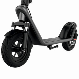 Confortul este asigurat de suspensie dublă cu arc înainte și roți pneumatice largi (10″ × 2,7″), cu 16 cm garda la sol, care absorb eficient denivelările și oferă stabilitate chiar și pe terenuri accidentate.