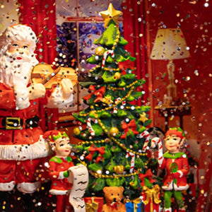 • Scene detaliate cu personaje de Craciun: Mos Craciun, brad, elfi si alte elemente tematice