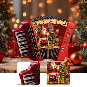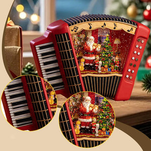 Acordeon decorativ Craciun premium cu lumini, muzica si glob cu zapada