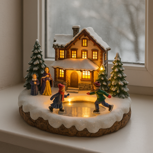 Adauga un strop de magie de sarbatori in locuinta ta cu aceasta scena decorativa cu patinatori, realizata cu atentie la detalii si iluminare spectaculoasa. Este decorul ideal pentru perioada de iarna, aducand atmosfera targurilor de Craciun direct in casa ta.