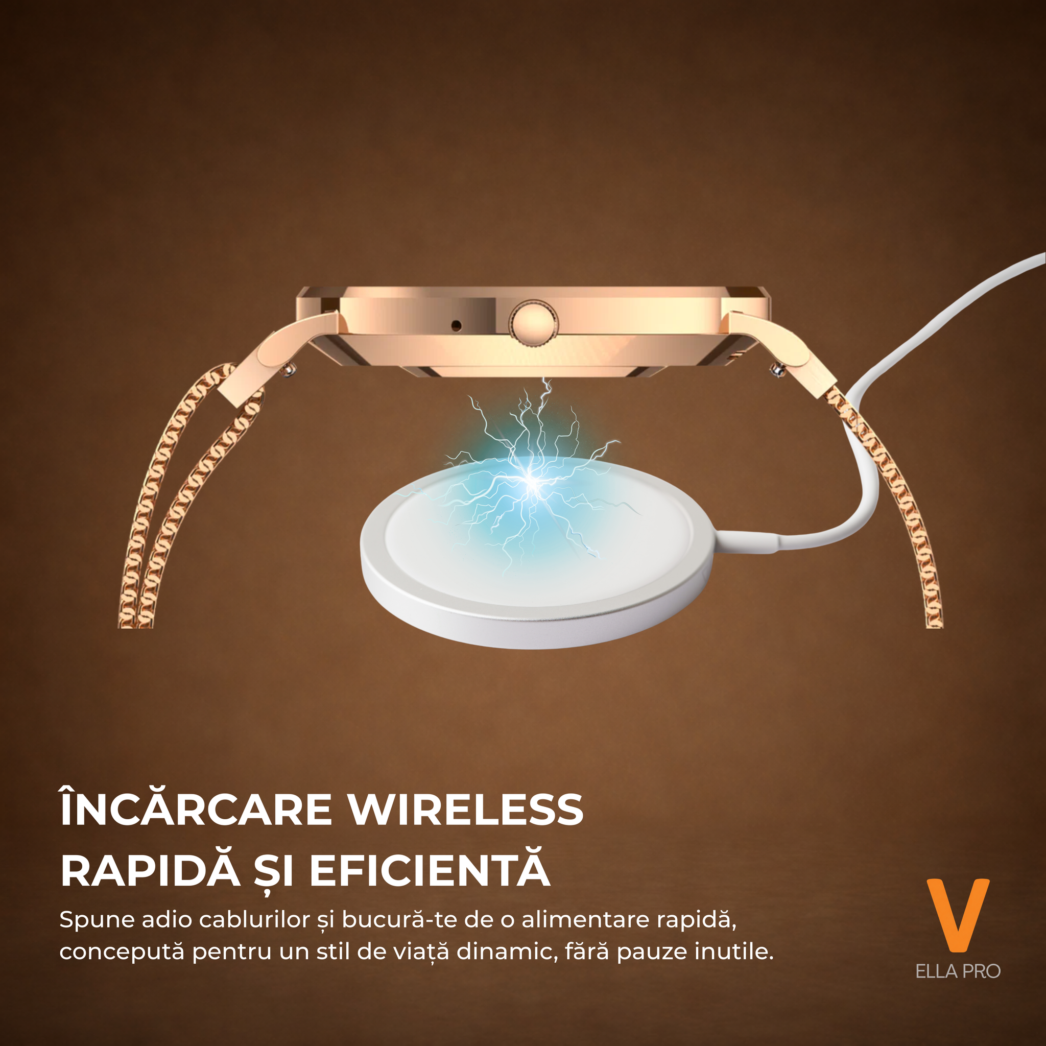 Vivendo® ELLA PRO îți oferă confort maxim cu funcția de încărcare wireless fast charge. Reîncarcă-ți ceasul rapid, fără cabluri încurcate — simplu, eficient și mereu gata de utilizare.