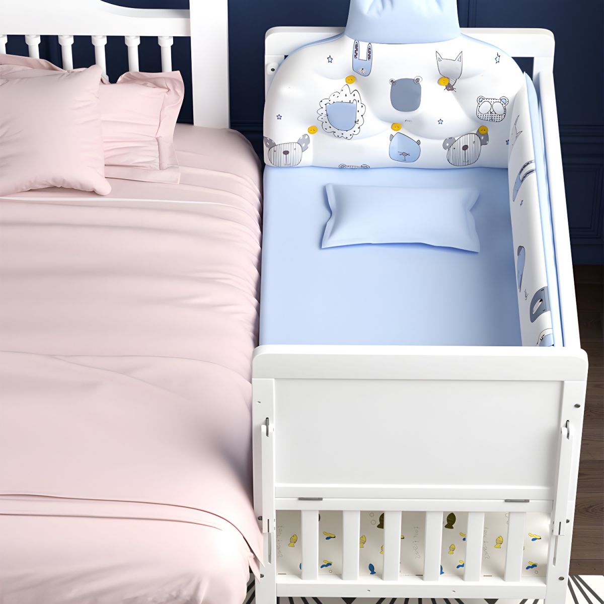 Include plasa de tantari pentru protectie suplimentara si confort. Baza patului se regleaza pe 3 niveluri, adaptandu-se etapelor de dezvoltare de la bebelus la toddler. Vopseaua non-toxica asigura un mediu sigur pentru copil.