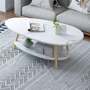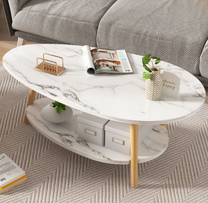 Adauga un plus de stil si functionalitate spatiului tau cu aceasta masuta de cafea ovala, ideala pentru amenajari moderne sau clasice. Designul elegant, combinat cu finisajul tip marmura si picioarele din lemn natur, transforma orice incapere intr-un spatiu primitor si bine organizat.