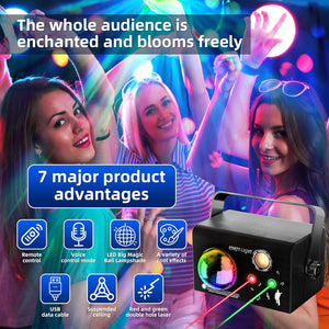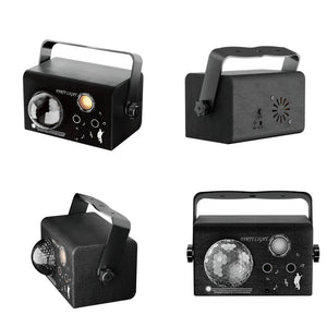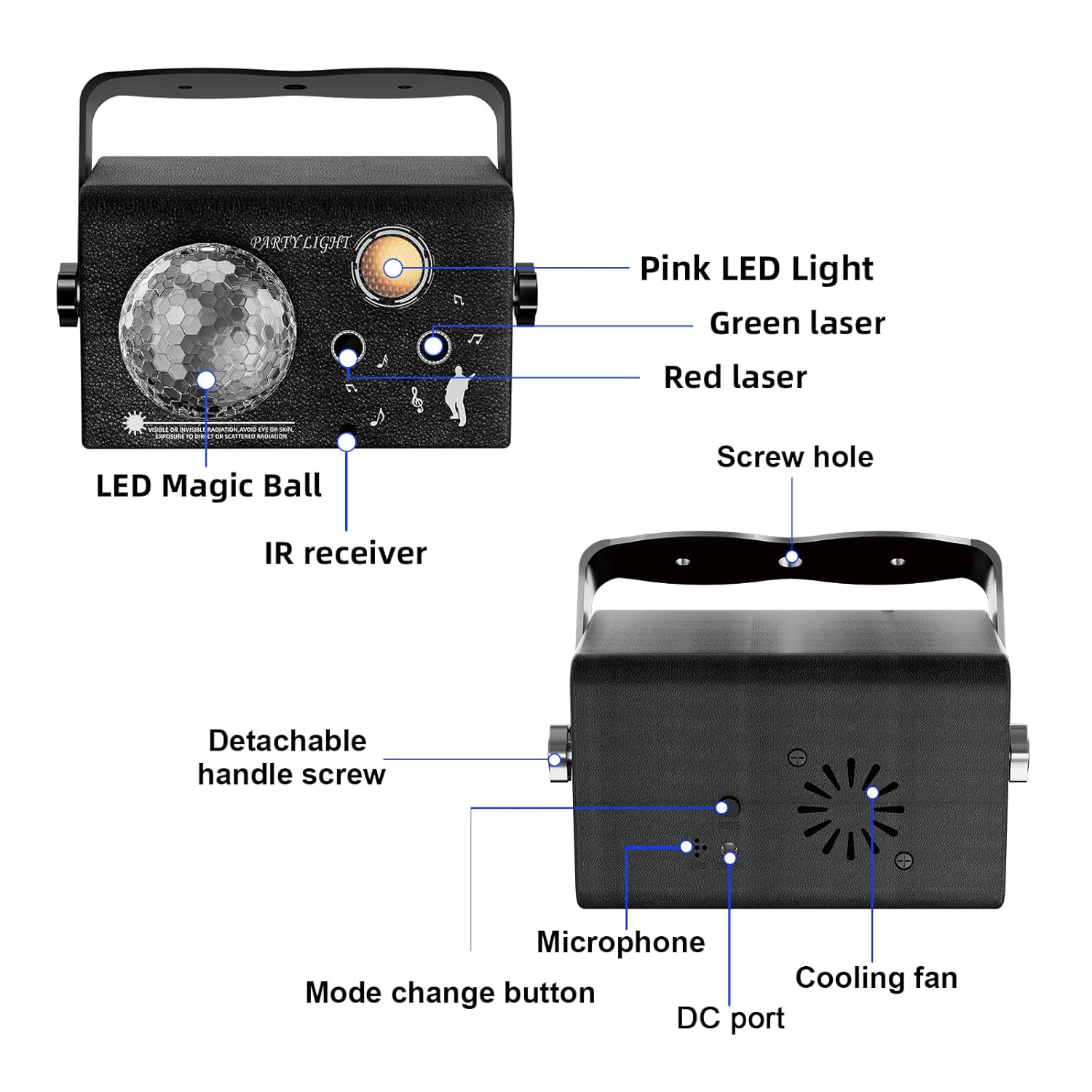 Acest proiector luminos compact este ideal pentru petreceri, evenimente si decor ambiental. Poate fi montat pe tavan, perete sau asezat direct pe masa, oferind flexibilitate maxima in utilizare. Designul sau modern si efectele luminoase colorate transforma orice spatiu intr-o atmosfera vibranta de club.