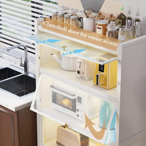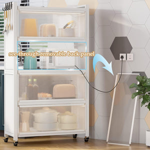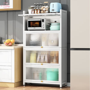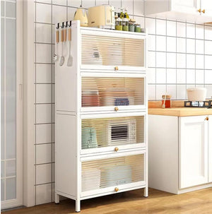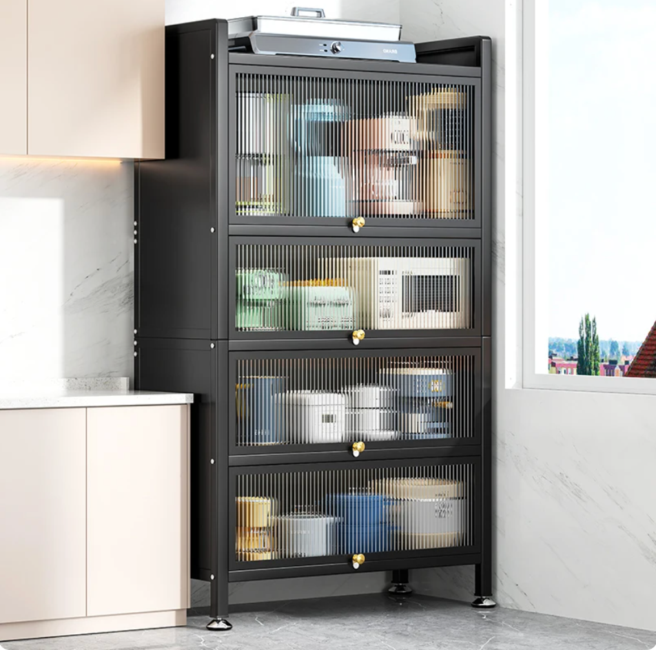 2. Stocare Spațioasa în 4 Niveluri: Cu patru niveluri generoase, dulapul ofera suficient spatiu pentru a organiza bucataria sau sufrageria ta. Poti pastra totul laindemâna,in timp ce mentii un aspect curat si ordonat.