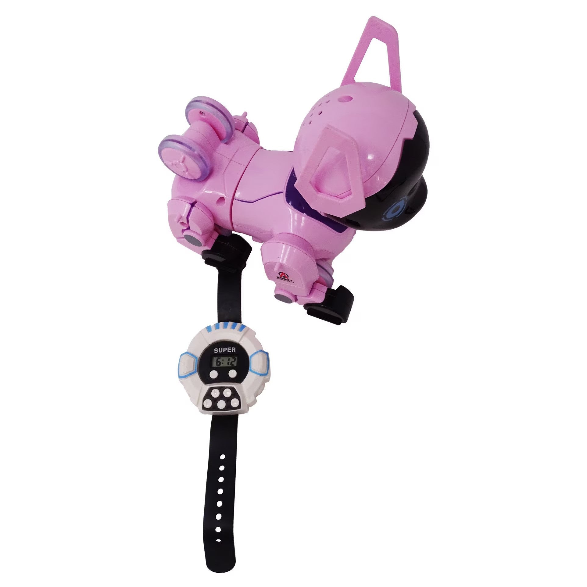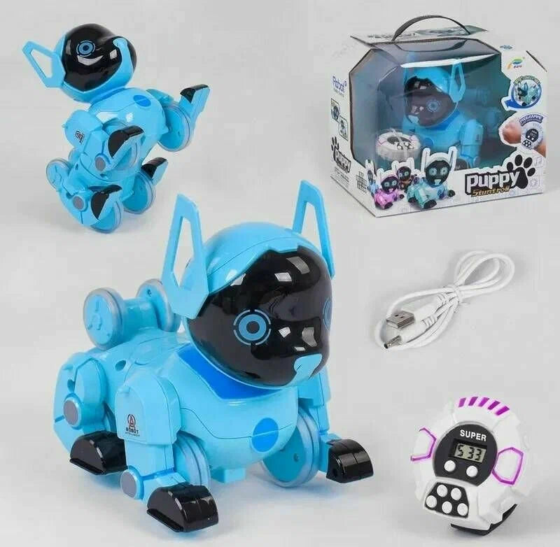 Robot Catelus Smart cu telecomanda ceas, cantece, lumini, rotire 360 de grade