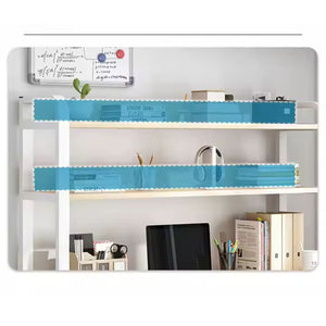 ✔️ 2 rafturi deschise sub birou – pentru cărți, agende sau cutii de depozitare