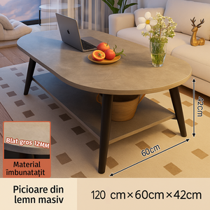 Realizată din lemn de calitate superioară, masuța de cafea are o construcție solidă și durabilă, asigurând stabilitate și rezistență în timp. Forma sa ovală oferă un aspect estetic plăcut, aducând un plus de eleganță în decorul ambiental.