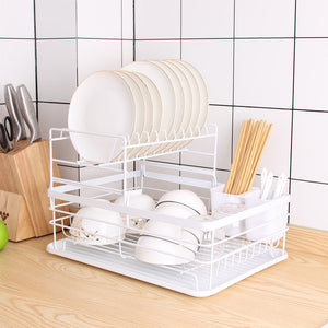 RESIGILAT - Suport de vase metalic supraetajat cu scurgator si suport tacamuri