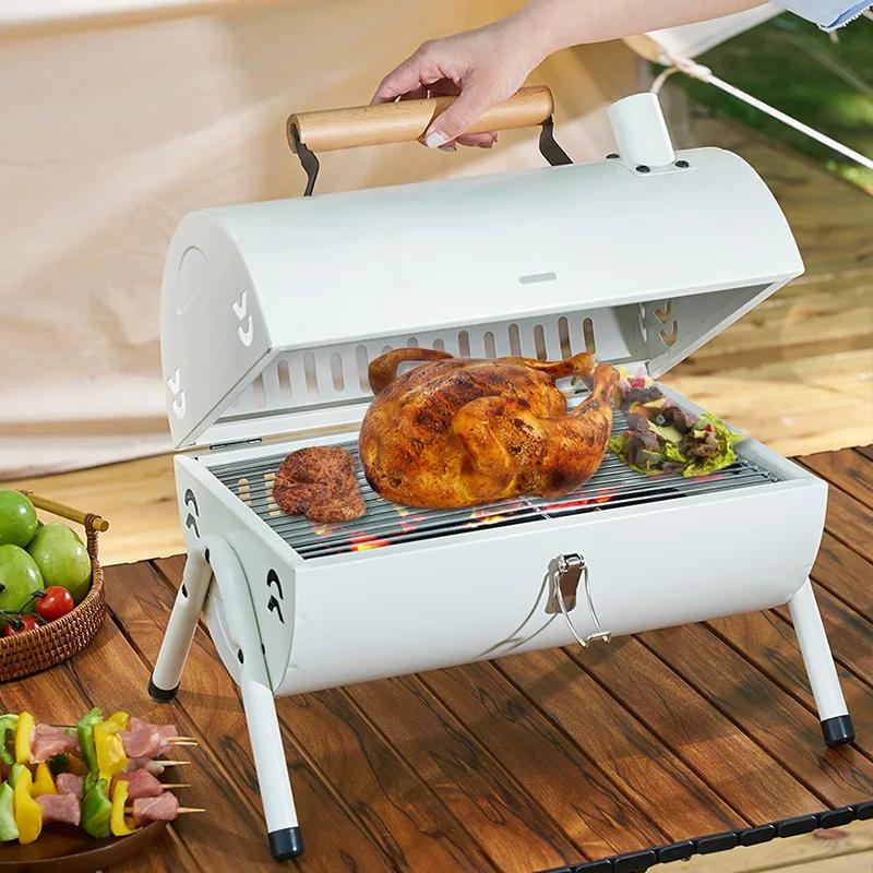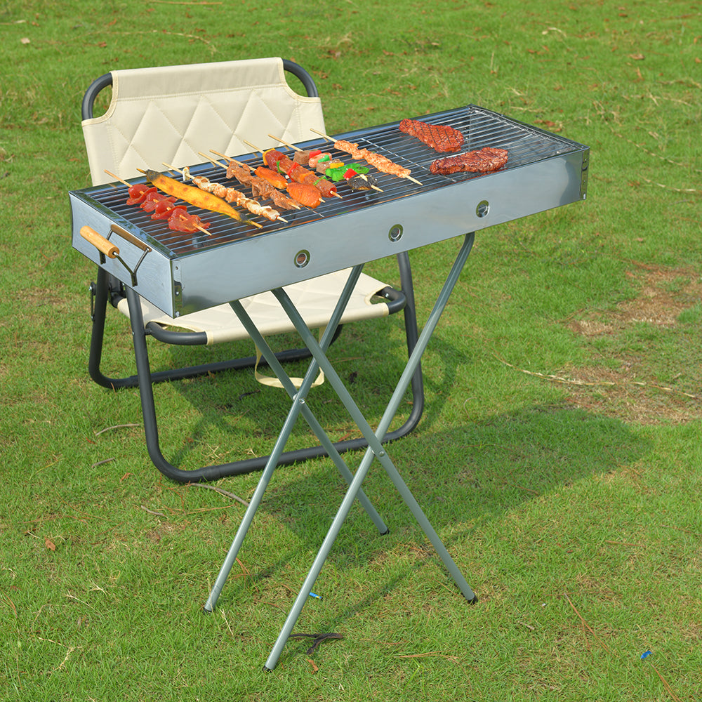 Gratar pliabil portabil cu maner din lemn, 65x30x67 cm