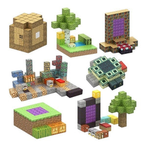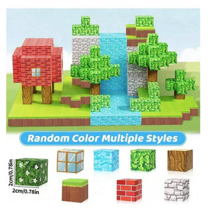 Set complet cu 75 de piese – blocuri magnetice in culori si modele diverse (apa, iarba, pamant, piatra, trunchi de copac) pentru constructii variate.