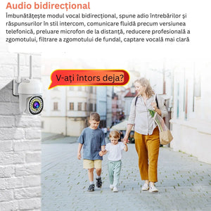 • Panoramă PTZ (Pan-Tilt-Zoom) – rotire orizontală și verticală pentru acoperire completă.