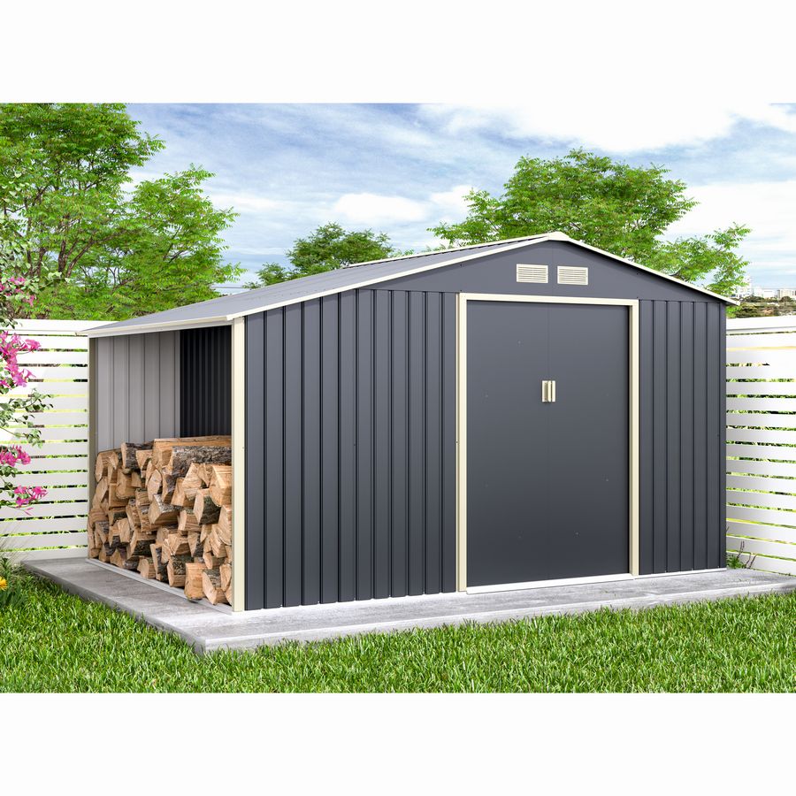 Cu o suprafață totală de 8,9 mp, acest model pune la dispoziție un spațiu amplu pentru depozitarea uneltelor de grădinărit, a mașinilor de tuns iarba, bicicletelor, sculelor electrice sau a mobilierului de exterior în extrasezon. Dimensiunile de 342 x 259 cm și înălțimea de 203 cm permit acces confortabil și organizarea eficientă a spațiului interior, inclusiv pentru obiecte voluminoase.