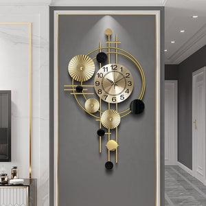 Adauga rafinament si stil oricarui spatiu cu acest ceas de perete mare, ce imbina perfect elementele nautice cu designul modern minimalist. Realizat dintr-o combinatie eleganta de lemn si metal, ceasul are un finisaj metalic sofisticat si o fata neagra cu accente aurii, oferind un aspect elegant si o lizibilitate excelenta.