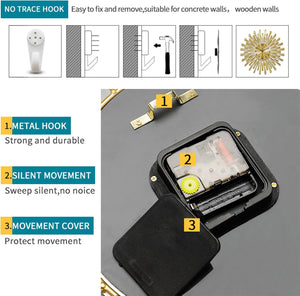 Ceas de perete decorativ tip soare, o piesa statement care imbina functionalitatea cu un design spectaculos, ideal pentru living, dormitor, hol sau birou. Modelul impresioneaza prin structura radianta, cu elemente metalice dispuse circular si accente stralucitoare care adauga eleganta si rafinament spatiului.