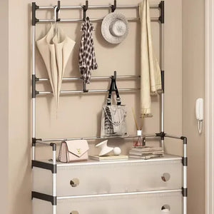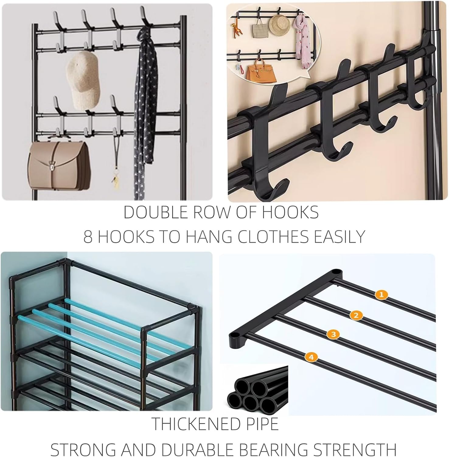 Transforma-ti holul intr-un spatiu bine organizat cu acest cuier multifunctional, care imbina 3 solutii practice intr-un singur produs: port-manteau, etajera pentru incaltaminte si raft de depozitare.