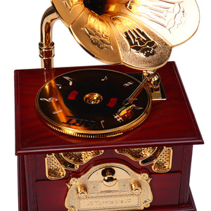 Adauga un plus de stil si arta in decorul casei tale cu acest gramofon decorativ realizat intr-un design vintage, plin de farmec si personalitate. Perfect pentru a oferi o nota retro spatiului tau, acest obiect decorativ este atat un element estetic, cat si un cadou inspirat pentru cei dragi.