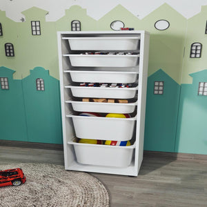 Dulapul cu 7 cosuri  este alegerea ideală pentru cei care caută o soluție practică și elegantă de depozitare. Perfect pentru bucătărie, baie, camera copilului sau hol – se potrivește oriunde ai nevoie de ordine!