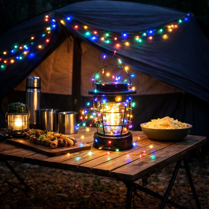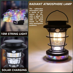 Acest model de felinar multifunctional este dotat cu un sir de lumini LED RGB de 10 metri, integrat la baza, ideal pentru iluminare si decor. Intensitatea luminii poate fi ajustata, iar lampa emite o lumina calda reglabila, perfecta pentru crearea unei atmosfere placute.