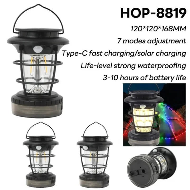 Banda luminoasa multicolora ofera efecte vizuale atractive, fiind ideala atat pentru exterior, cat si pentru decorarea locuintei. Felinarul este echipat cu panou solar integrat, dar poate fi incarcat si prin USB Type-C, oferind flexibilitate maxima in utilizare.