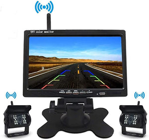 Set monitor auto cu 2 camere metalice IR wireless pentru tiruri, autocare, camioane, utilaje.
