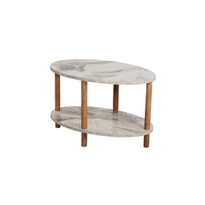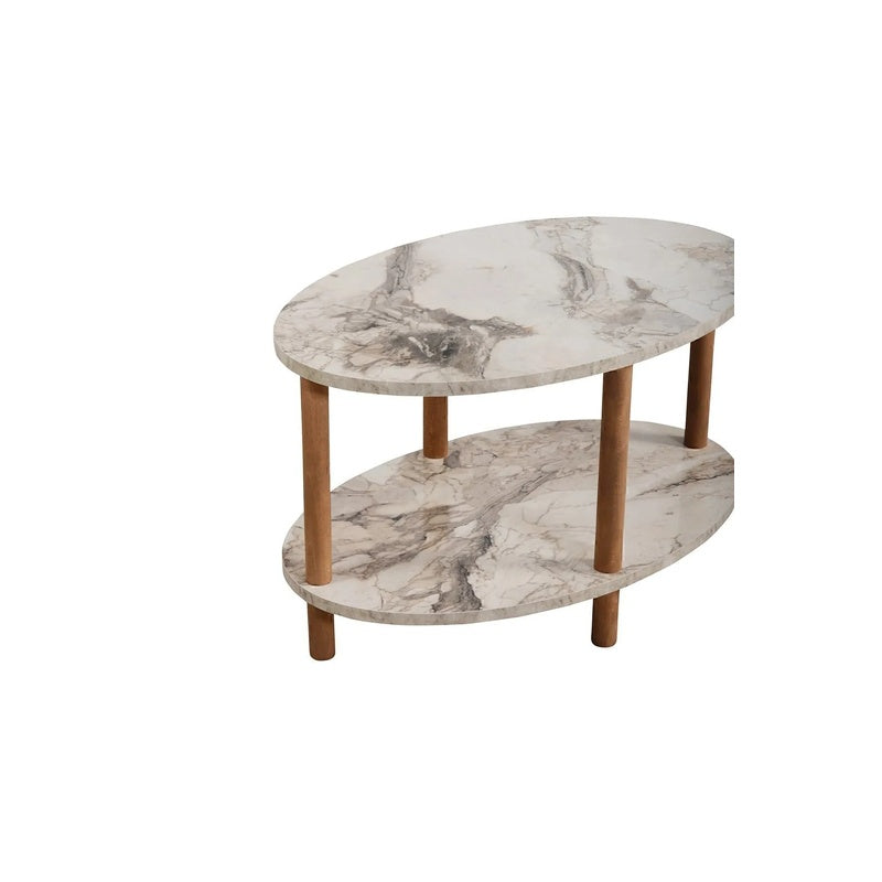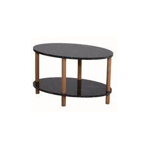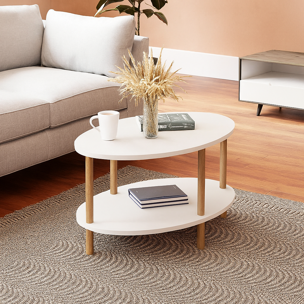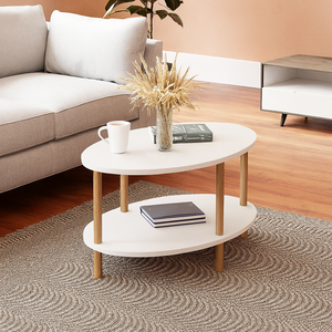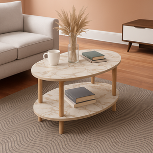Transforma-ti sufrageria cu aceasta masuta de cafea eleganta si functionala! Designul modern cu forma ovala si finisajul cu efect de lemn adauga un plus de stil oricarui spatiu. Raftul inferior ofera un loc practic pentru reviste, telecomenzi sau decoratiuni, mentinand suprafata mesei libera si ordonata.