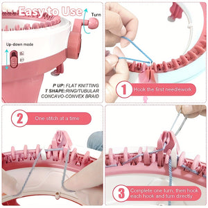 Transforma timpul petrecut alaturi de cei mici intr-o experienta educativa si distractiva! Masina de tricotat este perfecta pentru a crea rapid esarfe, caciuli, manusi, genti si multe altele – fara experienta anterioara!