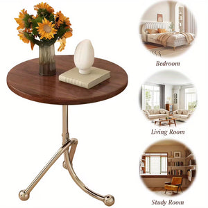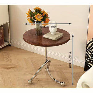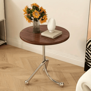 Completeaza-ti decorul cu o masuta laterala eleganta ce imbina farmecul vintage cu liniile moderne si materialele premium. Blatul rotund, cu aspect cald si natural, se combina armonios cu structura din otel inoxidabil, oferind o piesa de mobilier rafinata, stabila si usor de integrat in orice incapere.