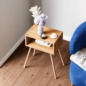 Adauga stil si ordine in locuinta ta cu acesta noptiera, prevazuta cu picioare din lemn natural si raft deschis pentru depozitare. Ideal pentru dormitor, living sau hol, acest mobilier combina perfect estetica scandinava cu durabilitatea materialelor premium.